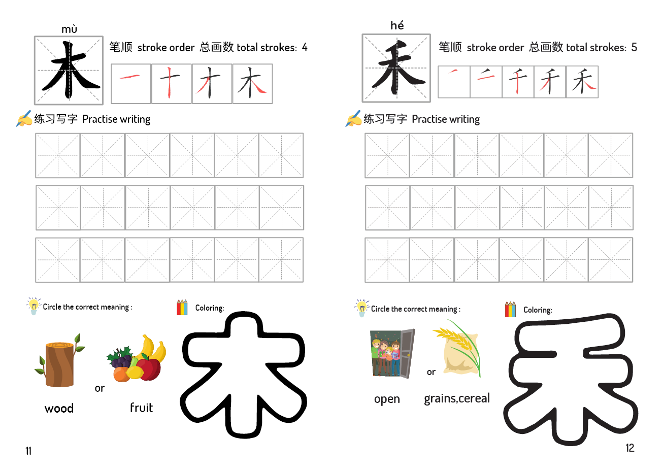This is an activity workbook for kids, designed to introduce your children to the Chinese language in a fun and engaging way. This workbook is filled with interactive activities such as practicing strokes, identifying and colouring to make learning Chinese a fun experience for your child!